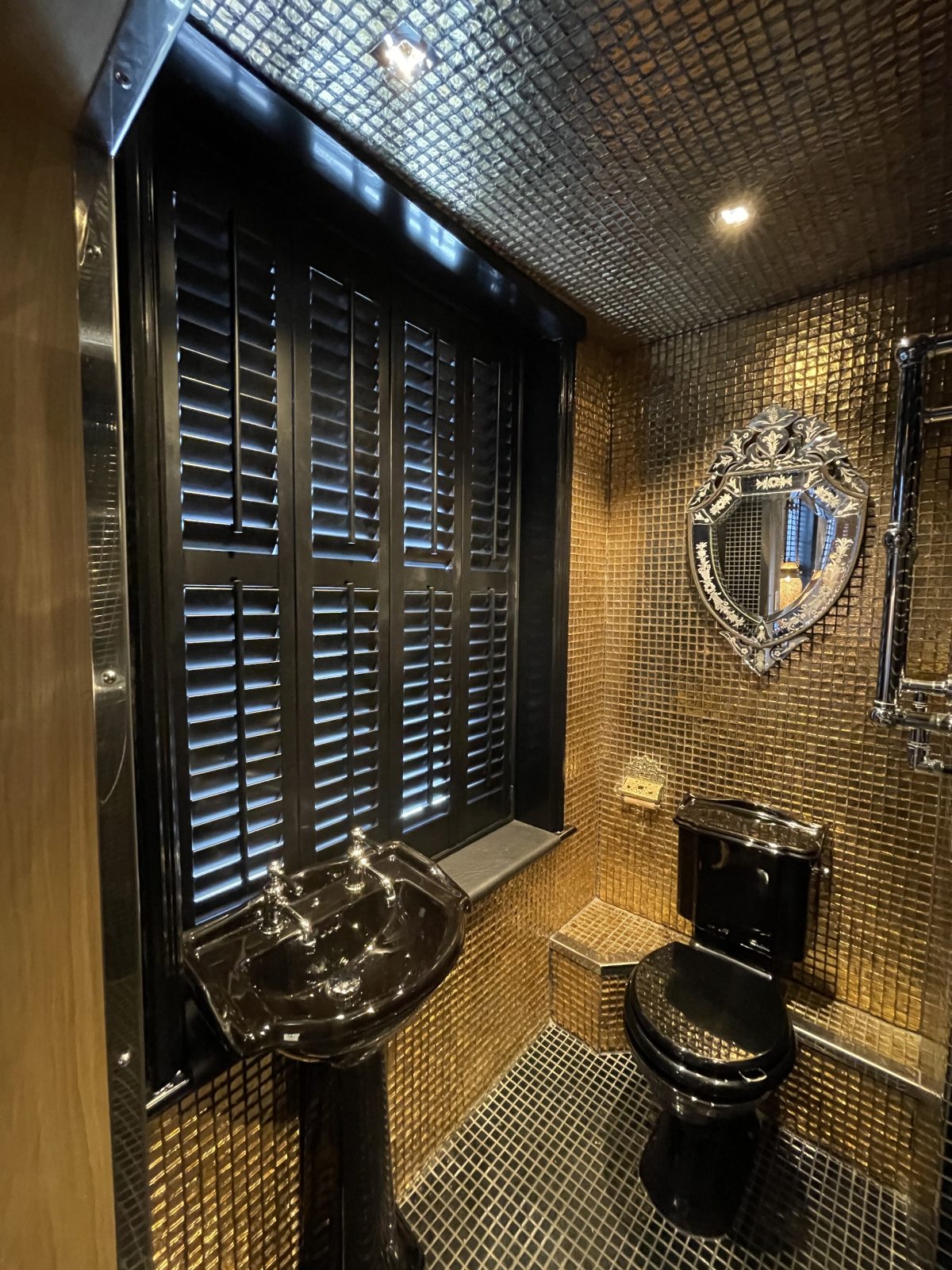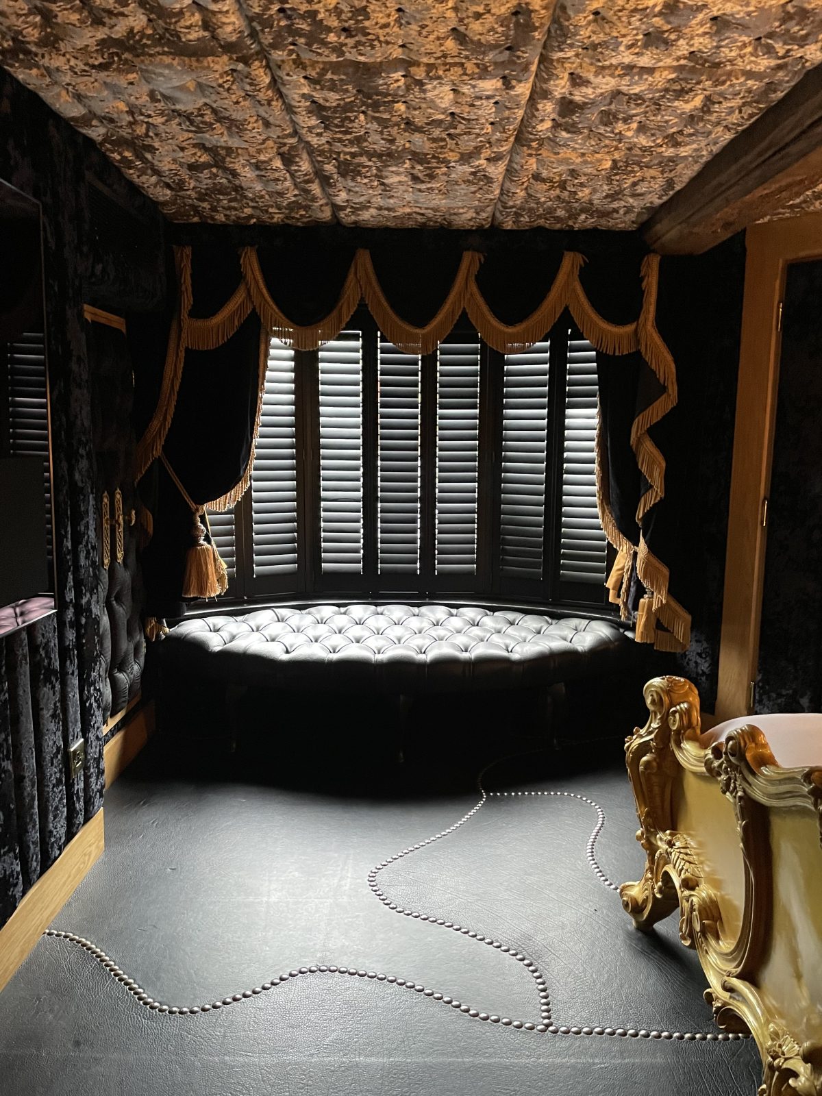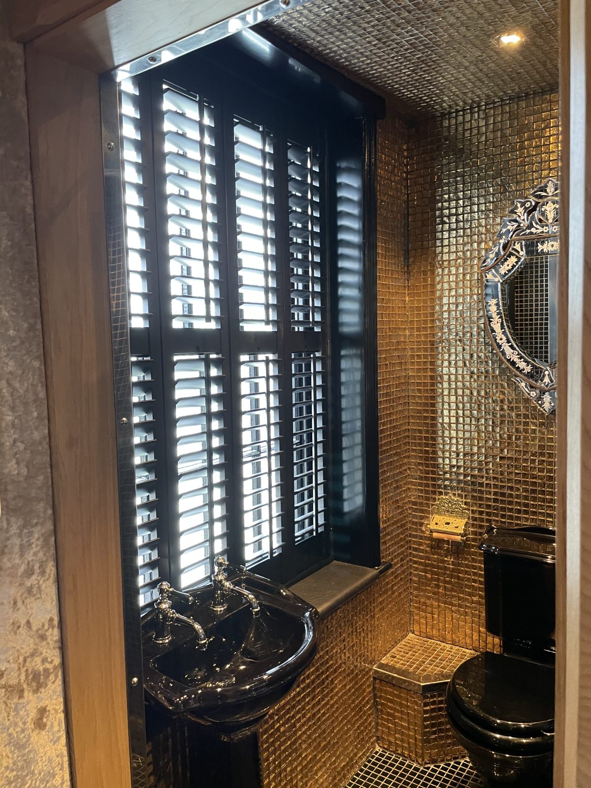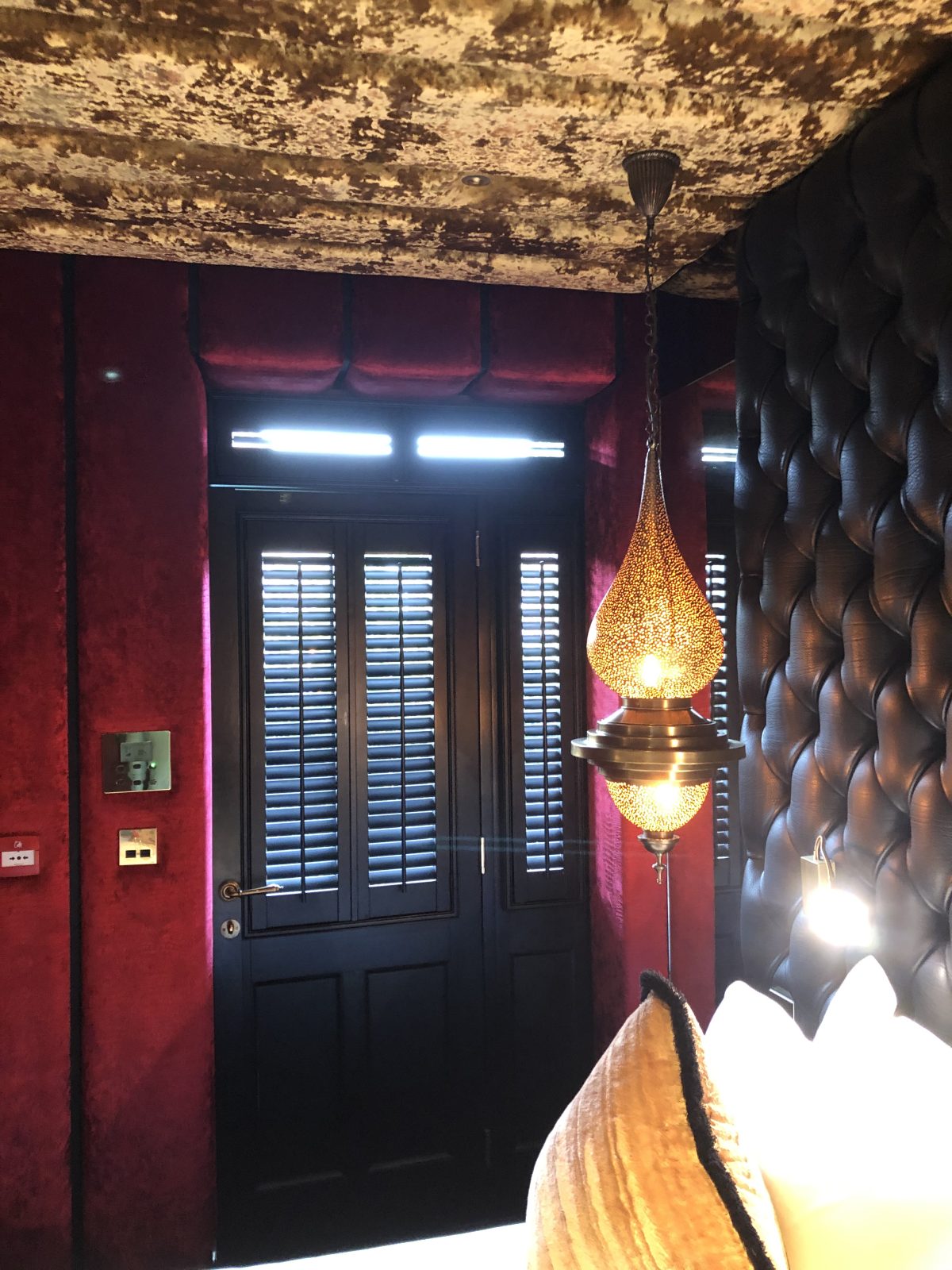 Long Island Shutters recently installed black shutters at the distinctive Crazy Bear hotel in Beaconsfield. These shutters, featuring 64mm louvres and an easy tilt internal mechanism, offer both style and functionality. Our work at the Crazy Bear hotel demonstrates our commitment to providing high-quality, tailored solutions for unique hospitality settings.